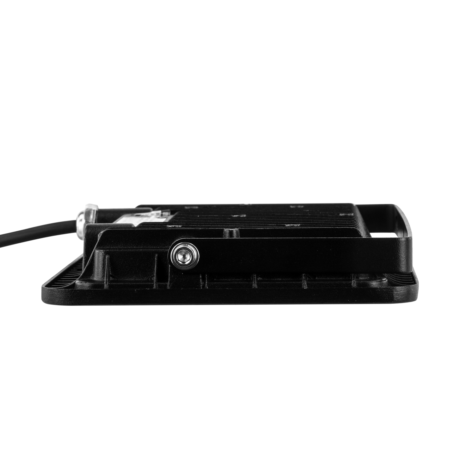 El proyector LED SLIM está diseñado con materiales de alta calidad, incluyendo aluminio y cristal templado, en un elegante color negro que combina con cualquier entorno. Sus dimensiones compactas de 207x161x31,5mm lo hacen fácil de instalar y adaptar a diferentes espacios.