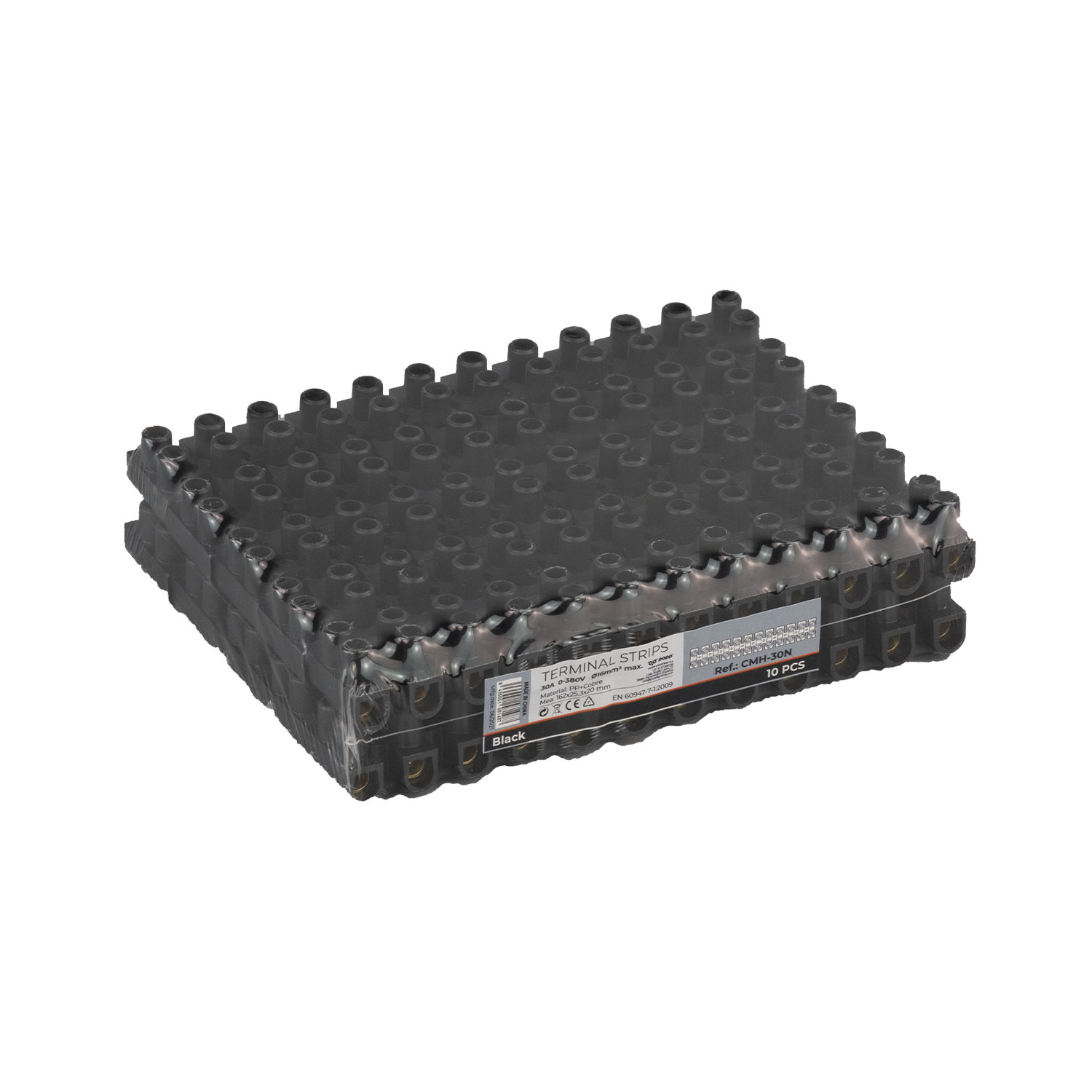 Clema regleta de 12 polo 30A negro cobre+pp 16mm²